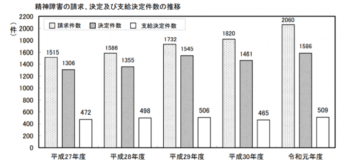 2.令和元年の精神障害認定請求件数は増加している