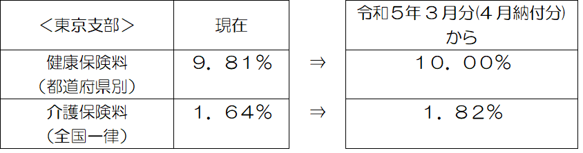 令和5年3月分(4月納付分)から保険料率がかわりますが、都道府県ごとに内容が異なります。