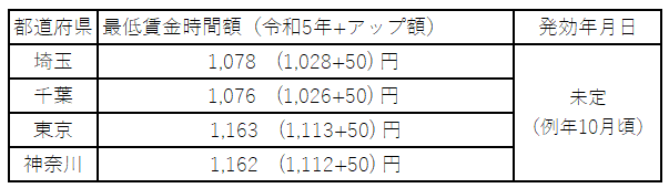 各都道府県の決定を待っているところですが、そのまま通ると関東近郊の答申金額は次のとおりです。