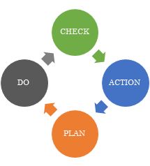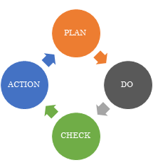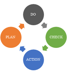 事業活動における生産管理や品質管理などの管理業務を円滑に進める手法の一つ。最後のACTIONを次のPDCAサイクルにつなげ、螺旋を描くようにサイクルをスパイラルアップさせて、継続的に業務改善する。