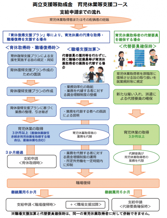 助成金については一定の要件がありますので、両立支援等助成金の詳細については、厚生労働省のページで確認ください。