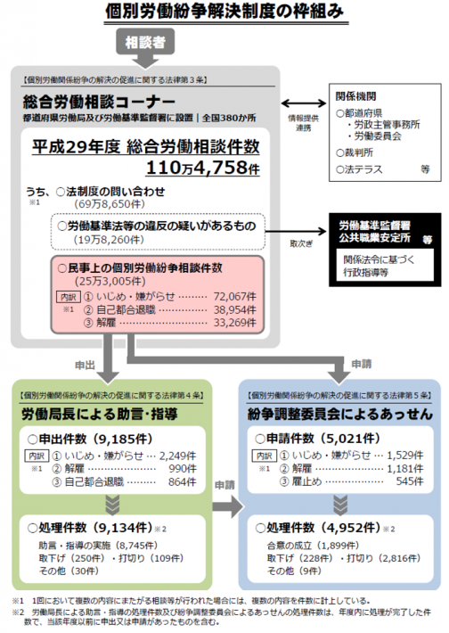 厚生労働省報道資料「平成29年度個別労働紛争解決制度の施行状況」を公表します。