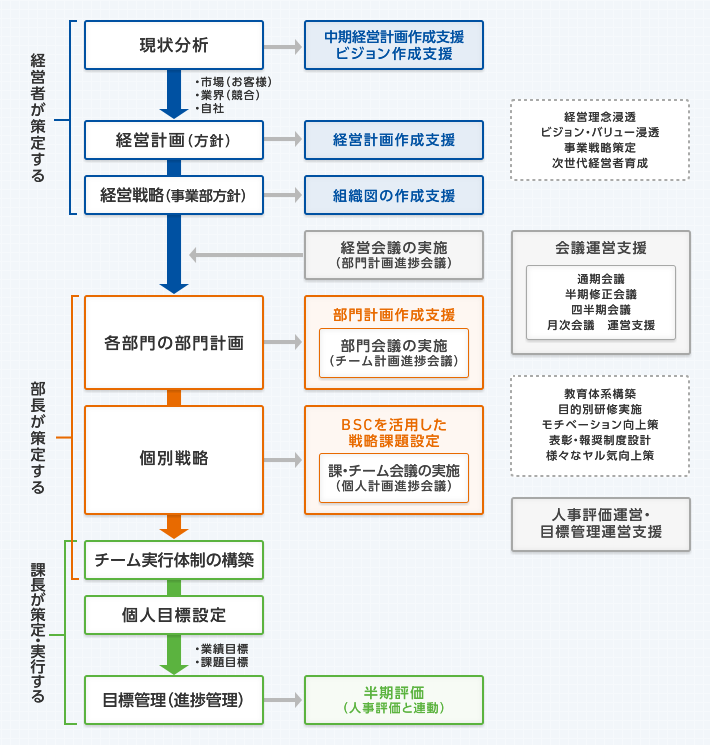 経営計画から現場の目標管理の流れと支援内容